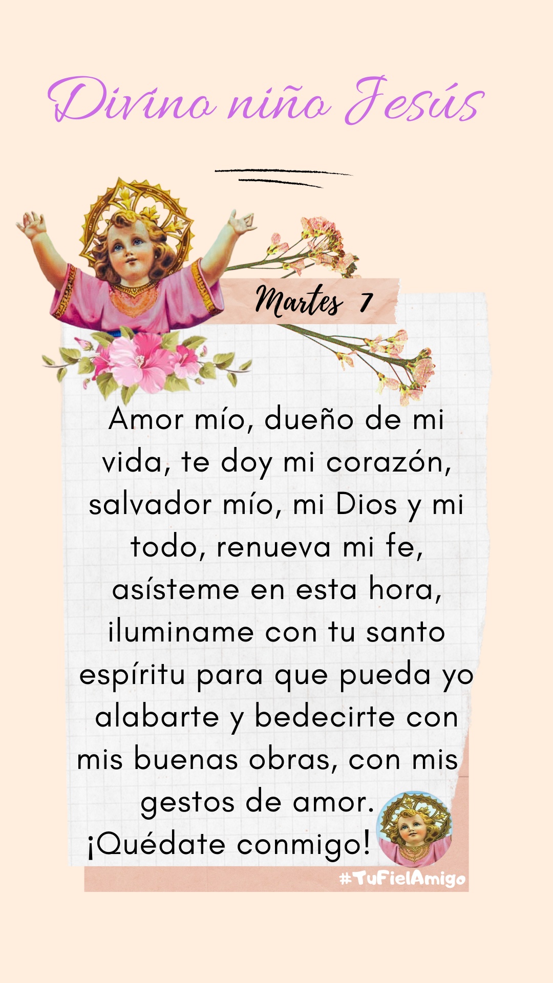 Divino Niño Jesús, te necesito, ayúdame. Tú que eres el Rey de reyes, haz que mi corazón sea tu trono y permíteme adorarte siempre. Amén.